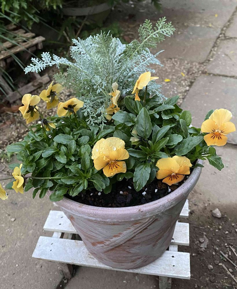 黄色💛?オレンジ🧡?のビオラも寄せ植えしました🪴💛🧡
