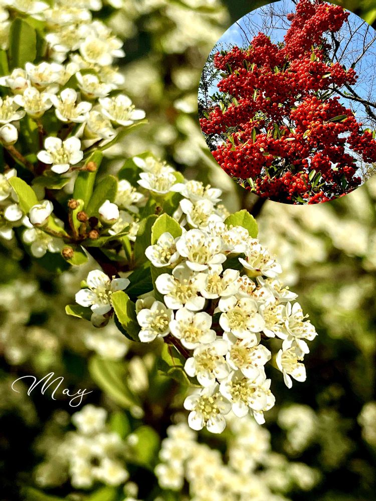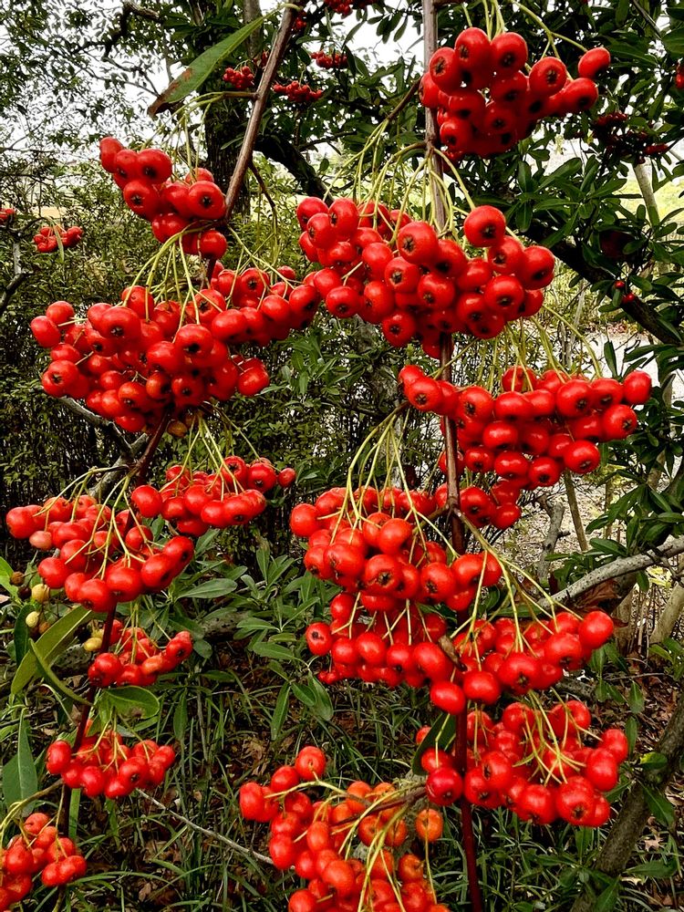 小花がモリモリ咲いて、モリモリの実🔴🟠になりました、ピラカンサ…
