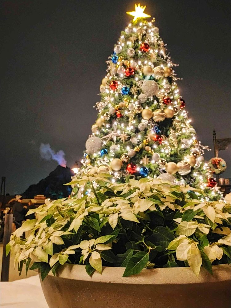 1📷.アメリカンウォーターフロントのポインセチアの花壇とクリスマスツリー🎄