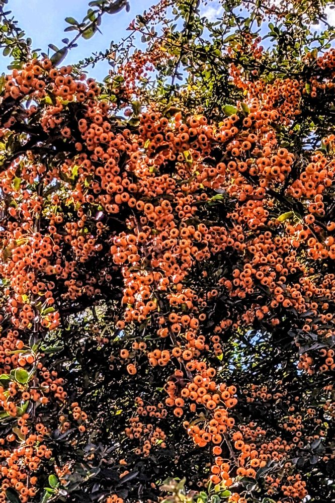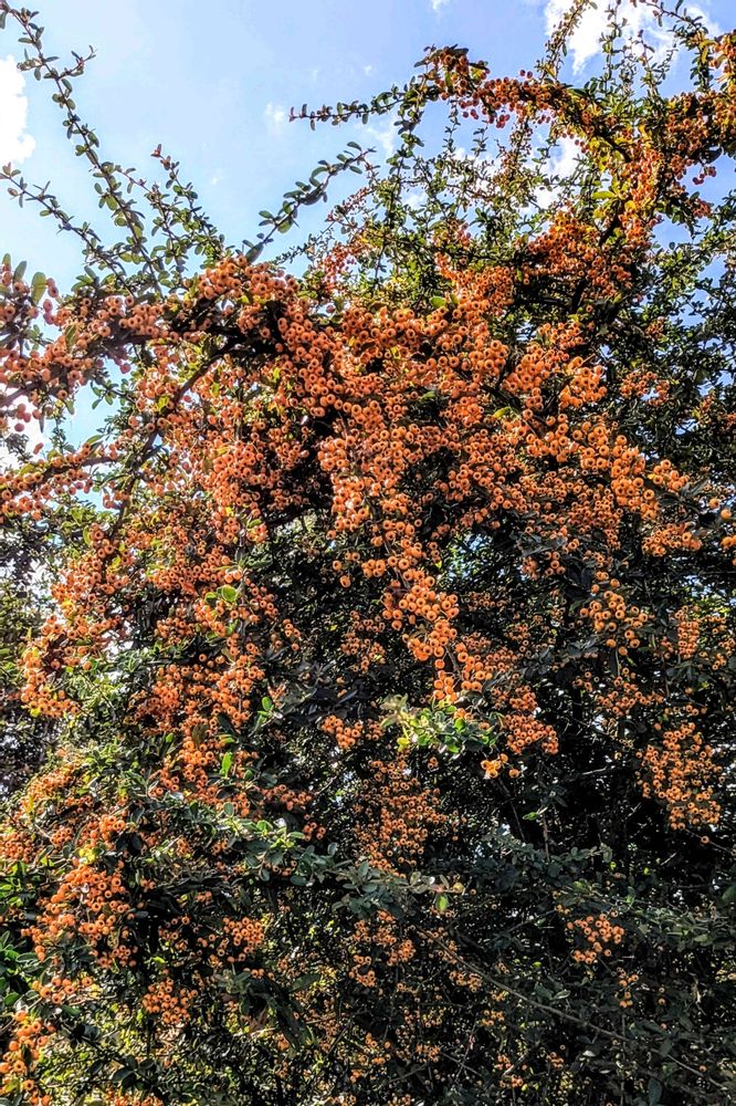 なんと そのすぐ近くに オレンジ色のピラカンサもありました🟠