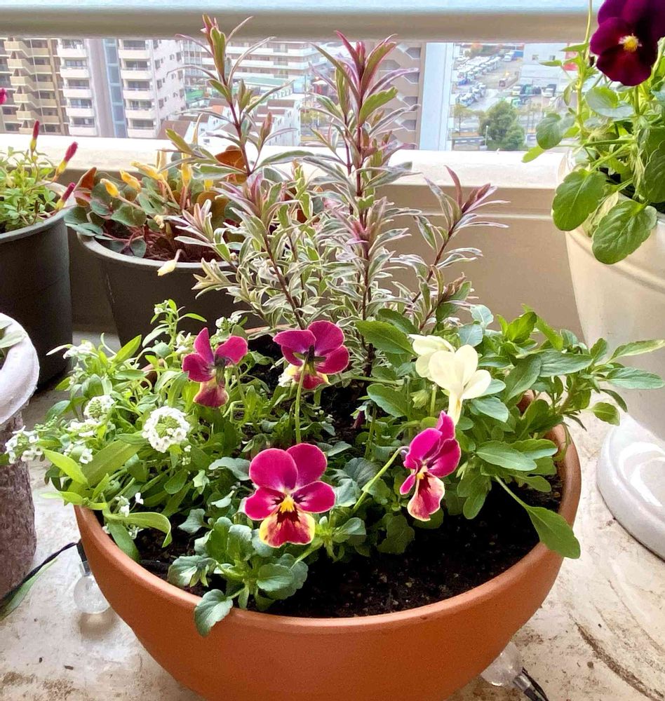 色んなお花を育てて楽しみたいので、寄せ植えが多いです💐