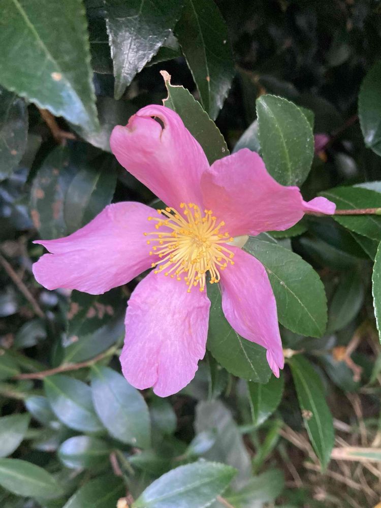 公園やご近所で見かける山茶花のうち、早くから咲き出すので、いつもタイミングを逃していました、、