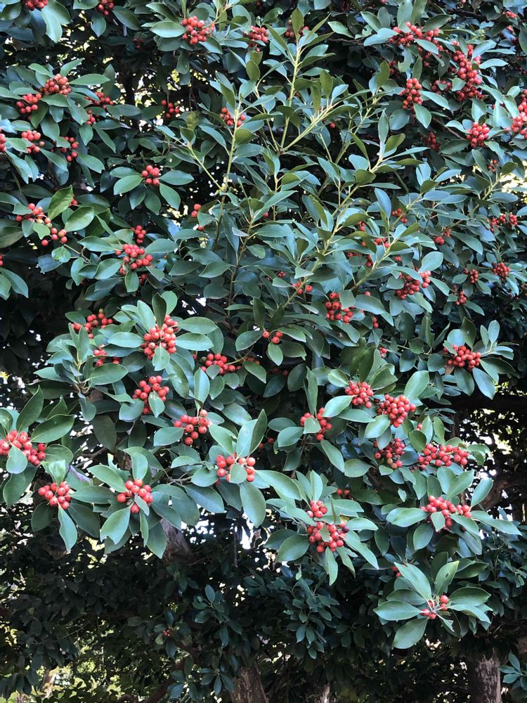 遠くから目立ってたので、「センリョウ」かな?」なんて恥ずかしいこと言ってました。幹を見ると太い😫