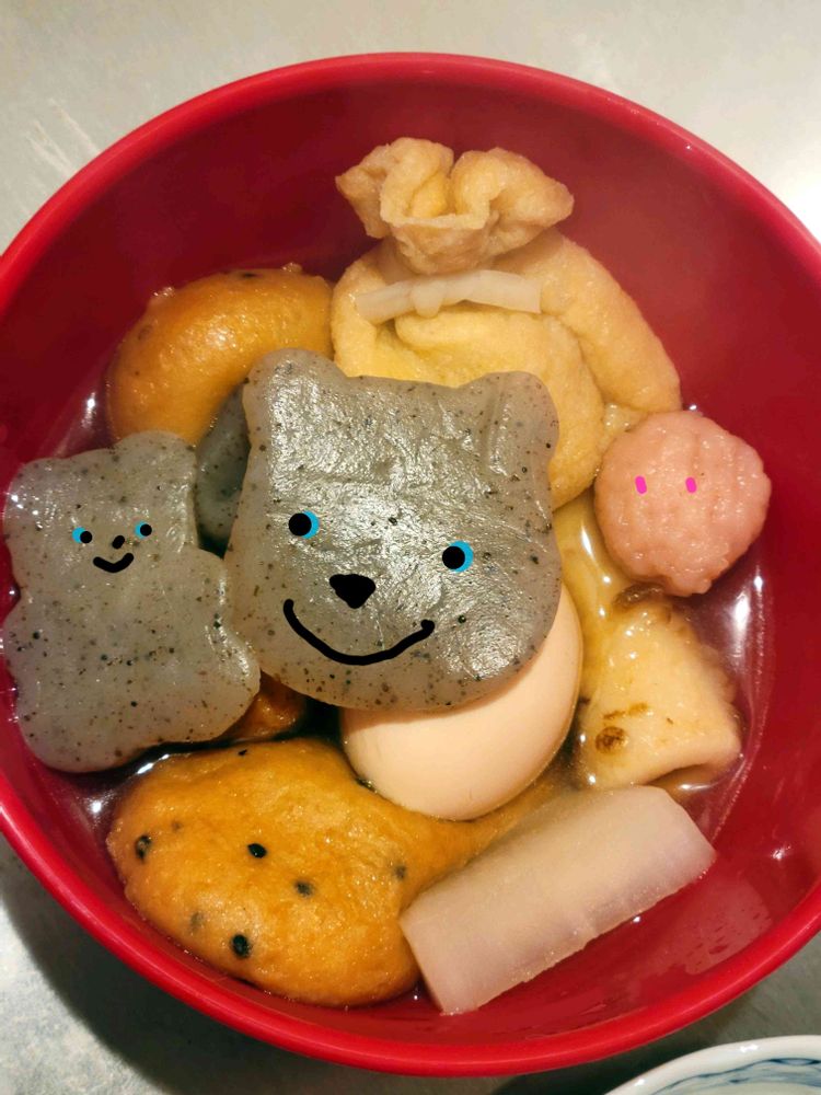 おでん🍢の中の コンニャク かわいくて 私も🍢 好きなので 食べたくなりました