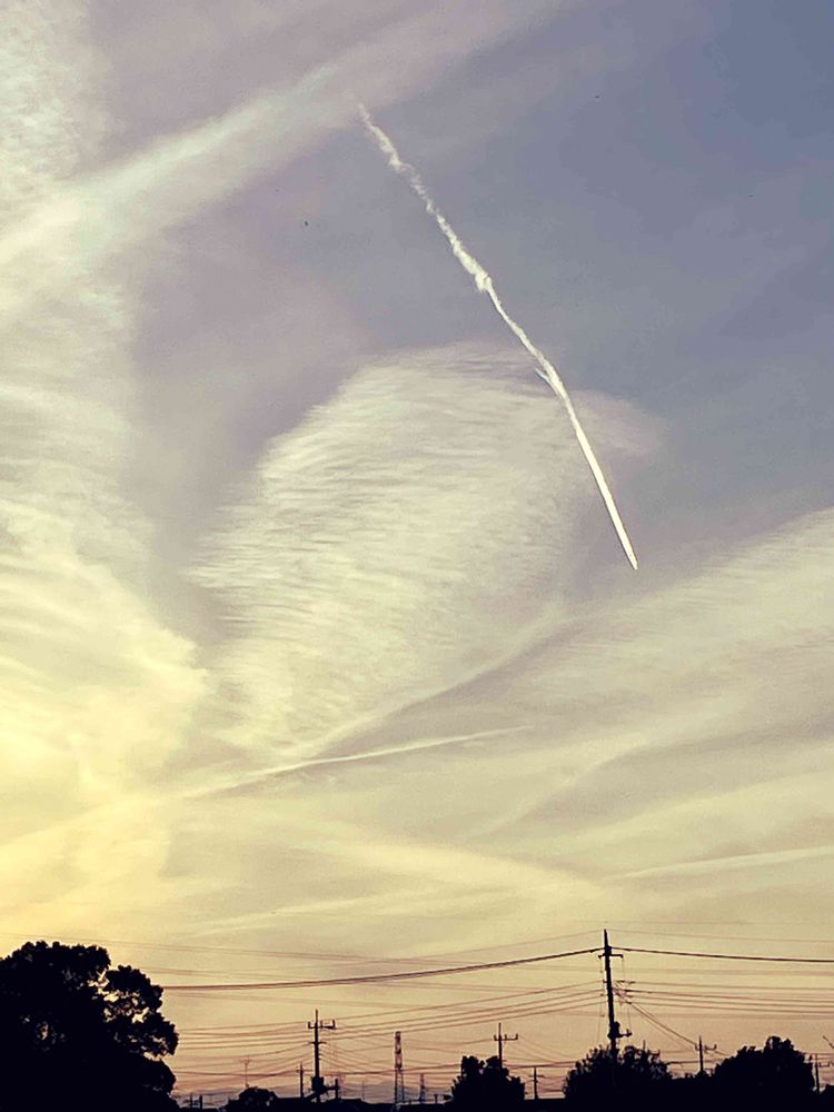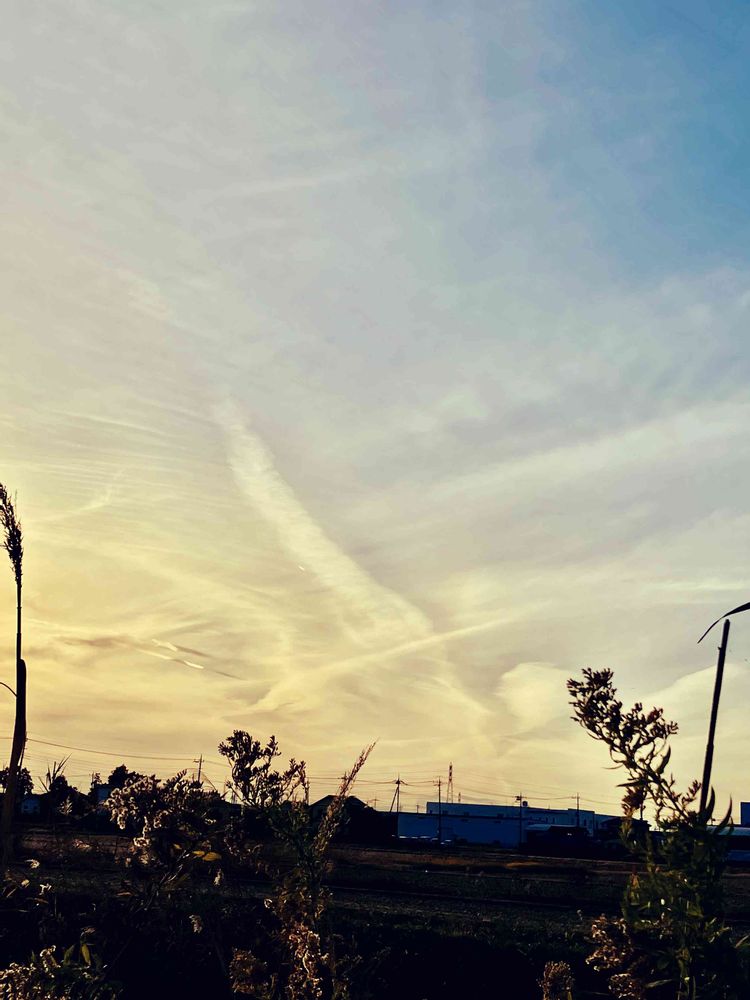 かよこさんの散歩中,夕陽と飛行機雲,とにかくGS 楽しもう!の投稿画像