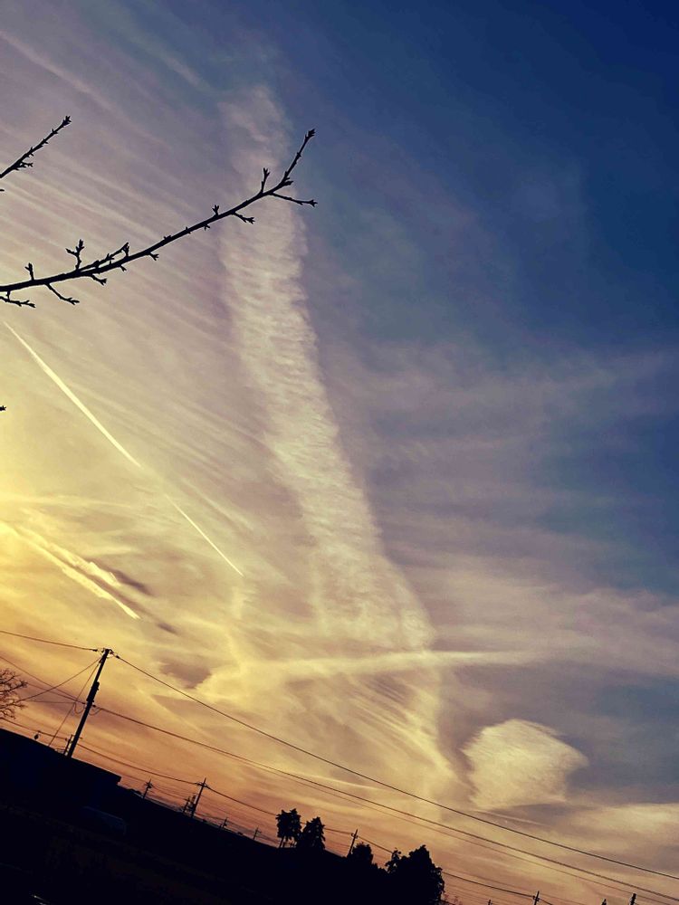 散歩中,夕陽と飛行機雲,とにかくGS 楽しもう!の投稿画像