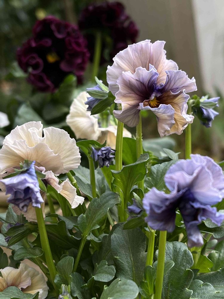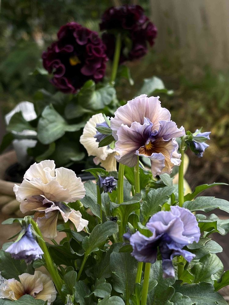 ビオラ ヌーベルヴァーグアクアレール💟🤎💛購入後一回り大きいポットに植え替えて少し花数増えたかな?😆
