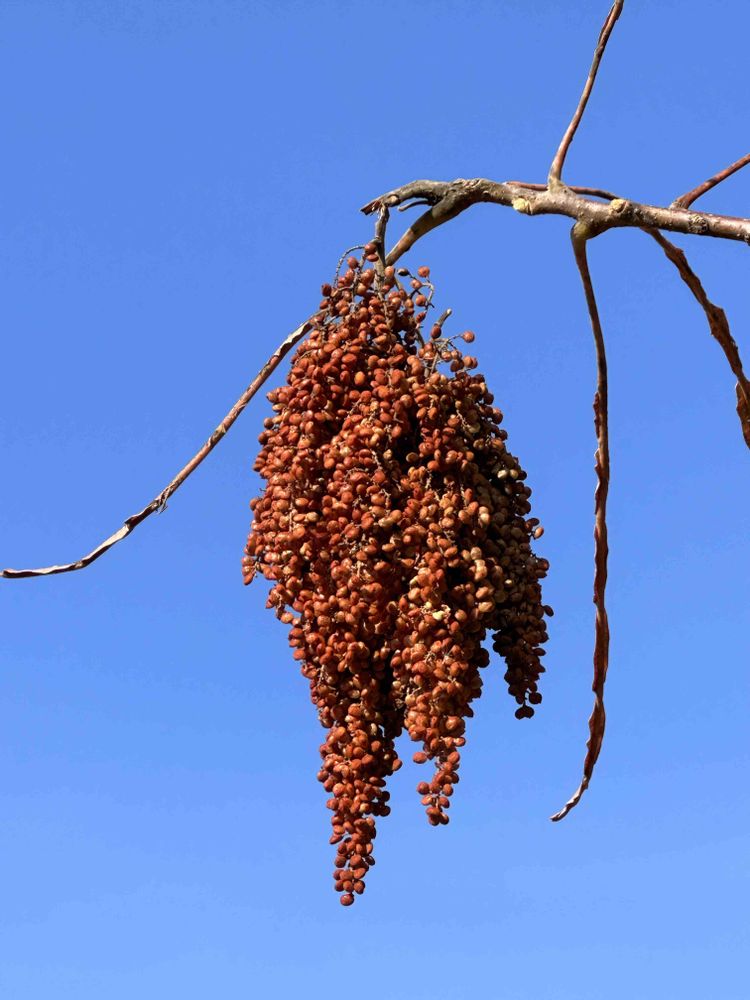様 花は枝の先に、円錐花序を出して沢山の花をつけるんです。花は白色にやや黄色味かなぁ。これは1番大きな房状の実です〜 雌雄異株の木です〜