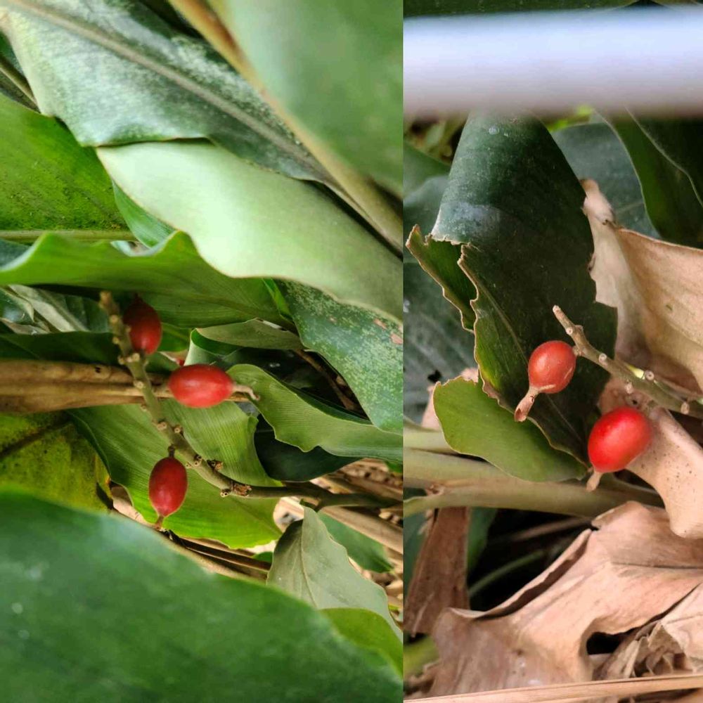 大きい葉っぱの下にある赤い実🔴🔴🔴🔴