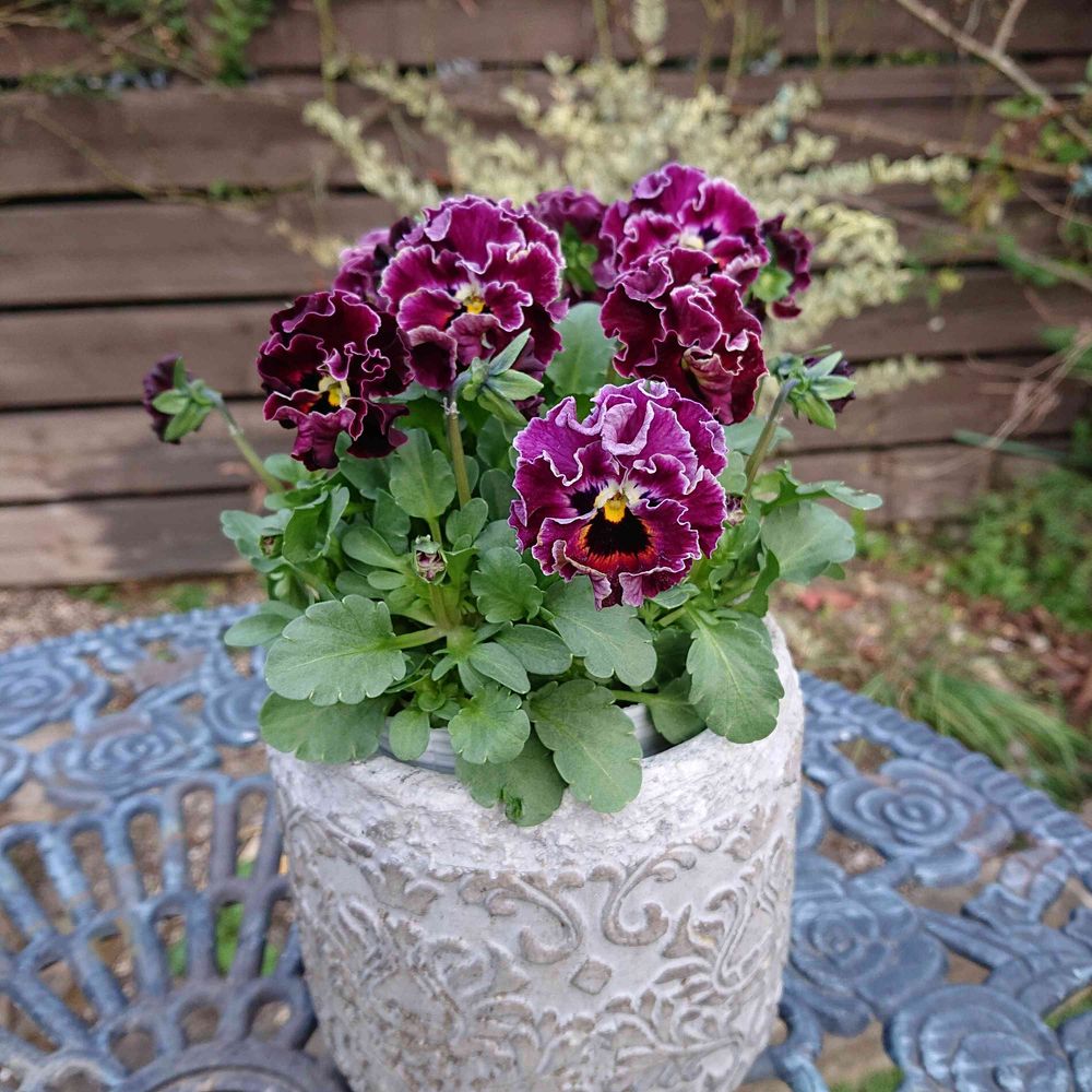 ふちが白くてふりふりしていて豪華なパンジーですね🥰