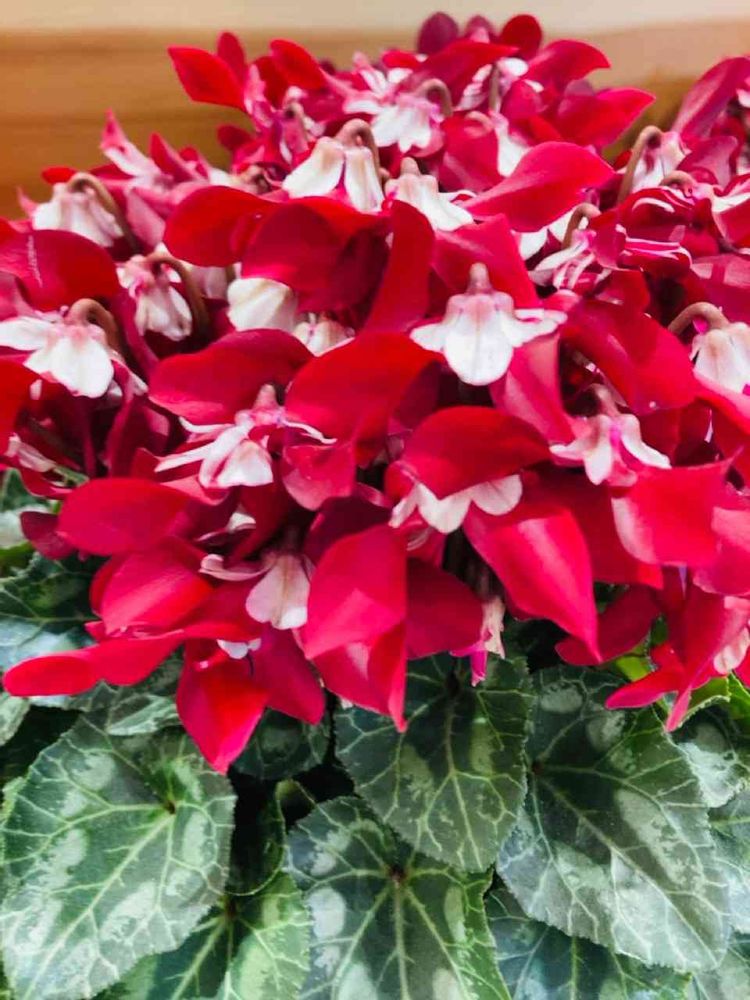 サンタクロースのお衣装のような紅白のツートンカラーに加えて、ミニシクラメンの品種とは思えない華やかさを感じる点も魅力✨