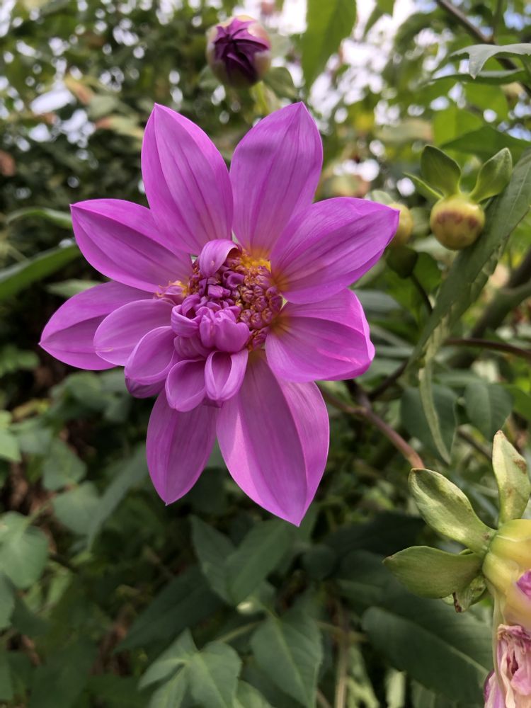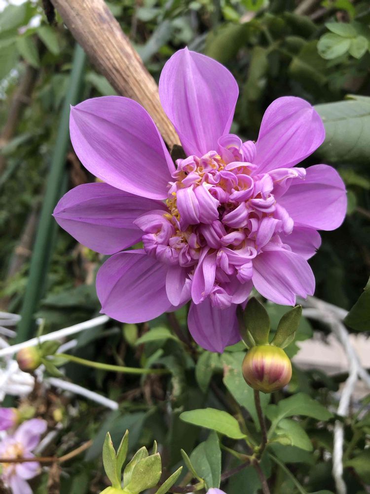 ダリアの王様「皇帝ダリア」をパチリ!皇帝のように背が高く、12月になっても元気良くお花が咲いています。📸🩷🌿⚔️😄🤗🌞✌️