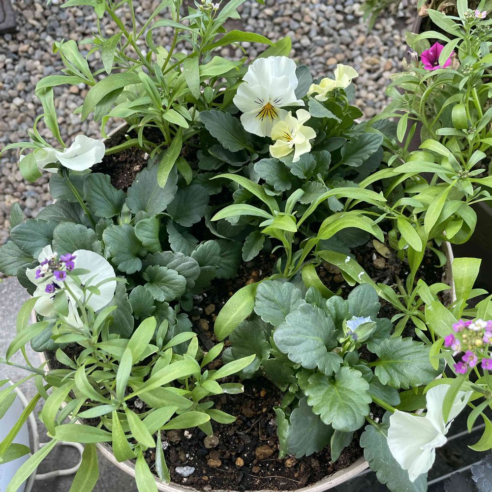 その上に自家採種の種まきビオラさんと種まきアリッサムさんを配置し植え込みしました♡
