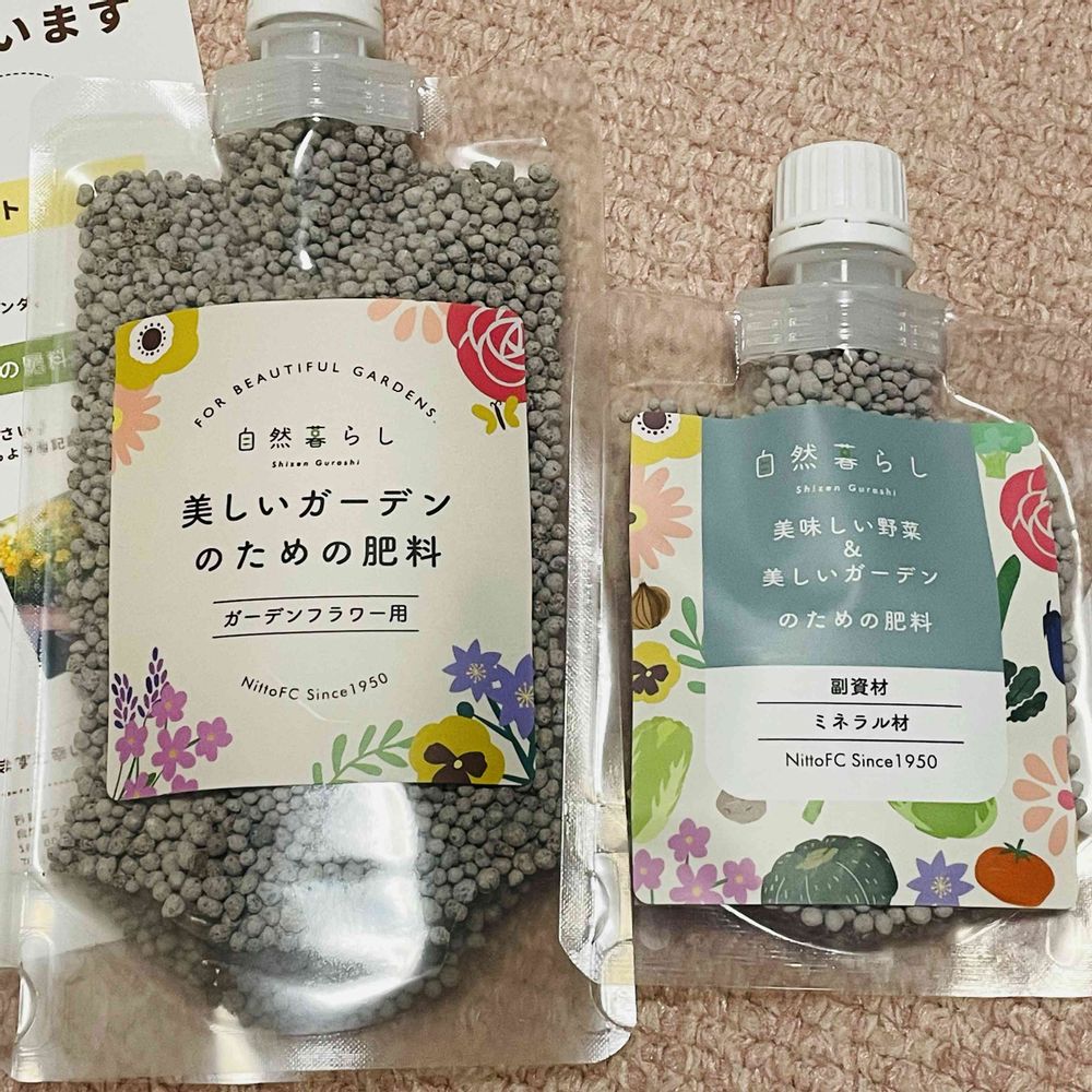 その上から自然暮らし・美しいガーデンのための肥料・ガーデンフラワー用をパラパラと