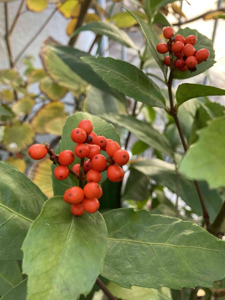 「茶の花や万両の赤き実の下に」(北原白秋)今日も暖かくしてお過ごし下さいネ🤗