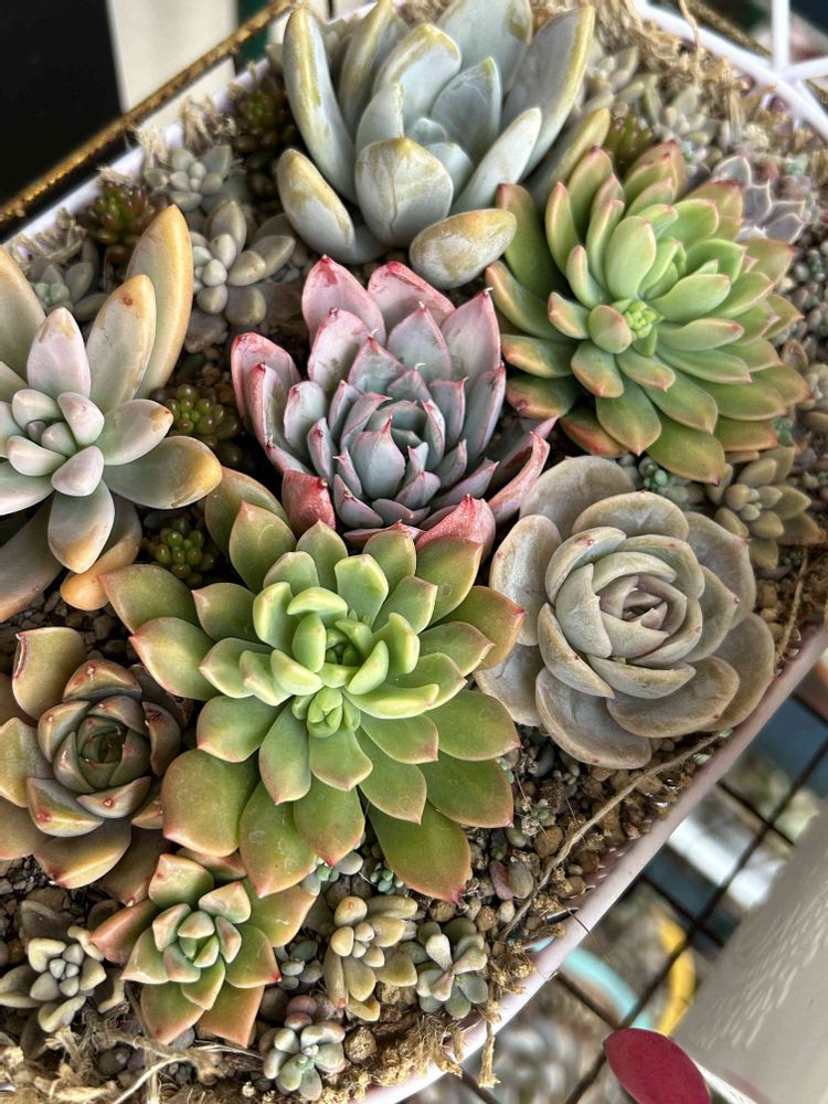 多肉寄せ植え ピンクカゴ ゆかっぴー