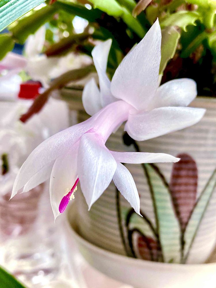 うっすらとピンクがのる白花で大変美しいシャコバサボテンですね🌵🌸😍