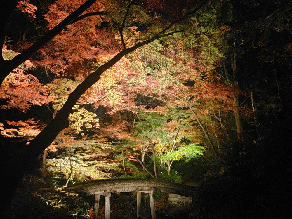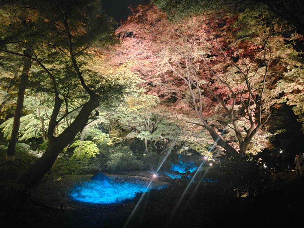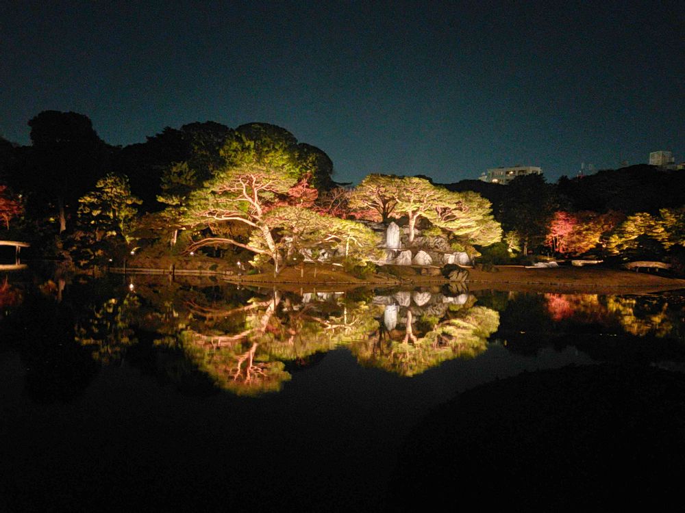 江戸時代の陰影としての美しを基調とした照明により夜の庭園の魅力