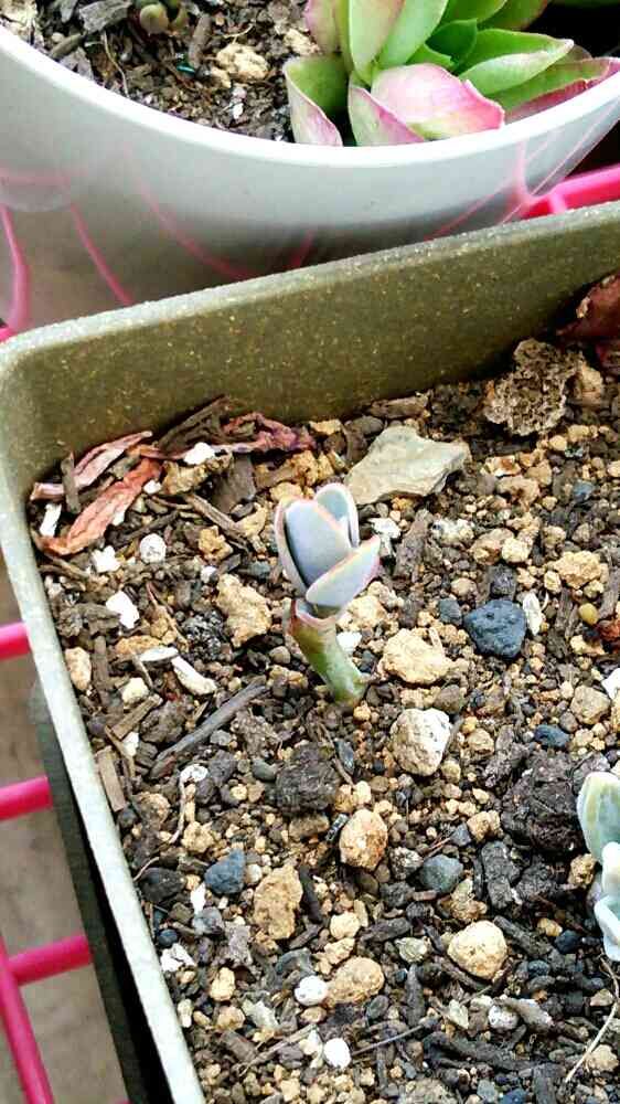 連れてきた当初、既に徒長しまくりだったのでプレゼントの寄せ植え用にと購入して、チョンパしたのを空いている所に挿しておいただけなのに、次の日から徐々に葉が盛り上がってて、それだけでもビックリしたけど枯れかかったかな~と思いきや新たな葉が出始めて…シッカリと根付いていて更にビックリ!!!\(◎o◎)/