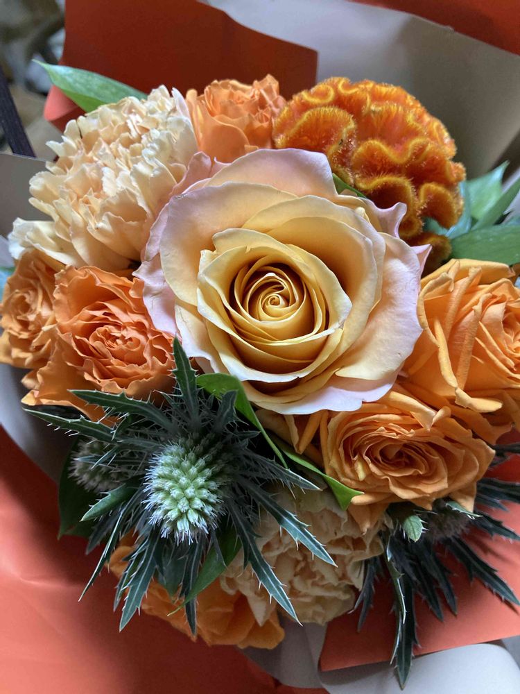 オレンジ系の素敵なアレンジメントですね。凄く元気が出そう🎶🎵🎶💕♥️