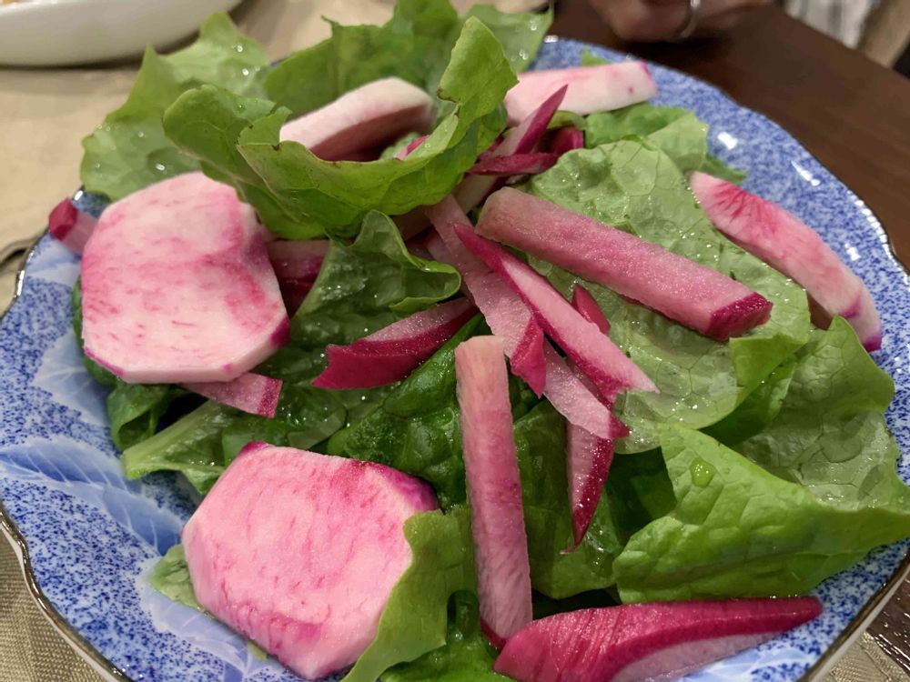 昨夜は紅くるり大根ともものすけとサンチュを収穫していただきました😋