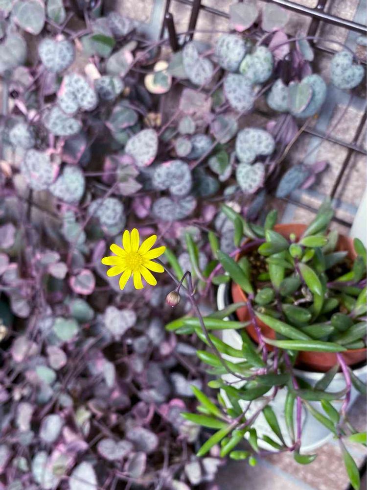 8日は葉っぱの発表会🏷️ネックレスの日🏷️ミニ鉢のルビーネックレス咲きました🌼♪ハートカズラは伸び放題でベランダから動かせず😅夜間は不織布とプチプチで覆って防寒してます🩵