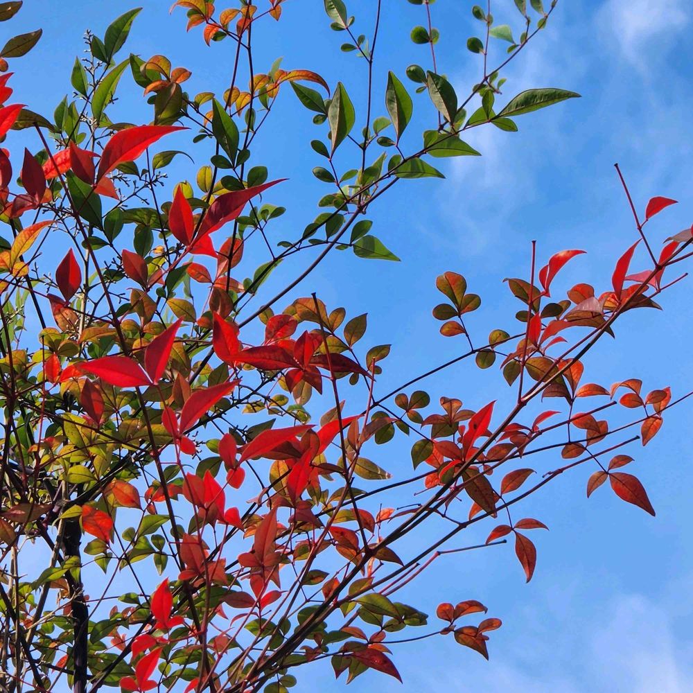 ②我が家の紅葉したナンテン。