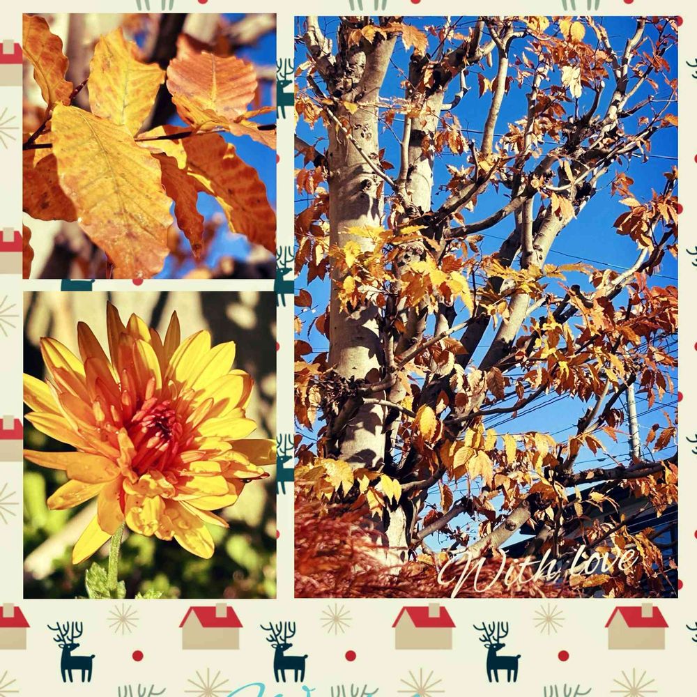 きれいに紅葉に黄色の菊を合わせて素敵なpicですね✨💛💖💖💛💛🤗🧡🎶🎶💕