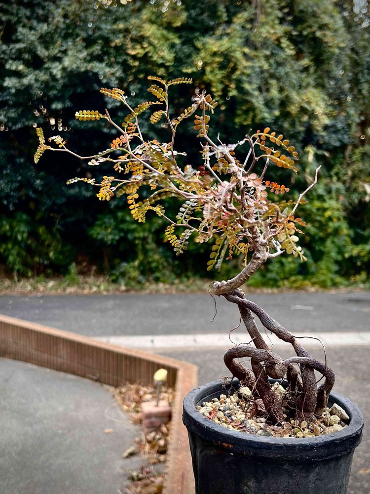 オペルクルカリア・パキプスの繊細な葉っぱ。紅葉しました。
