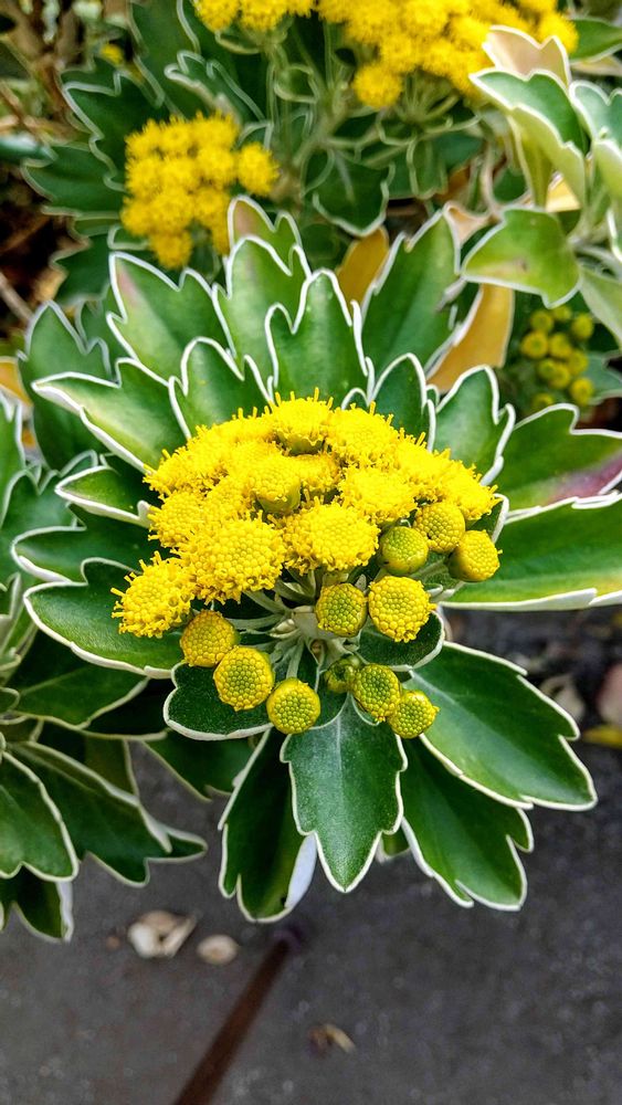 素敵な葉のイソギクが咲く公園に帰りに寄りました✨💛🌱