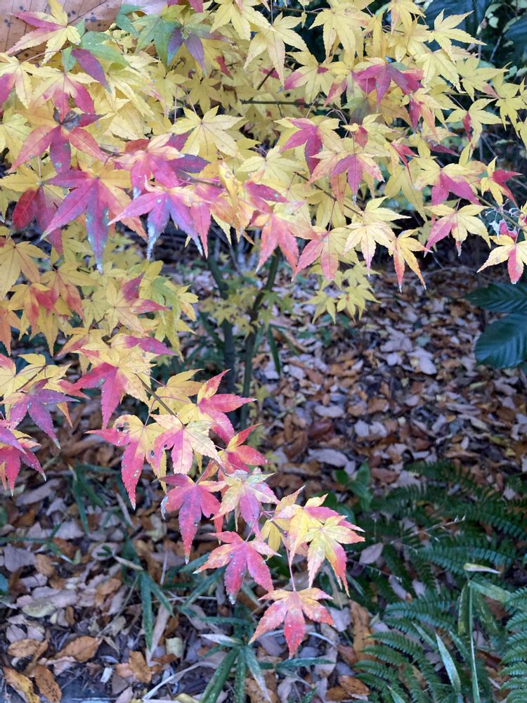 雑木林のなかにこのモミジが一本だけ生えて一際目立っていました。