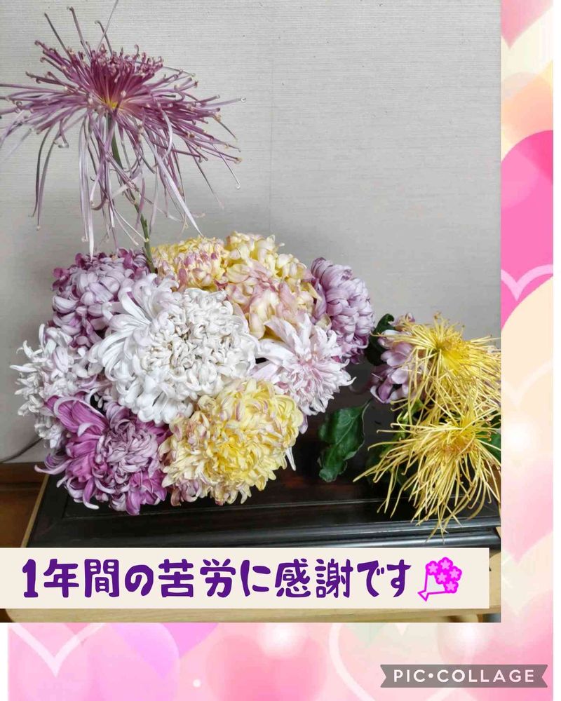 旦那様が作られたりっぱな菊最後の最後まで大切にされて素敵に飾られていますね