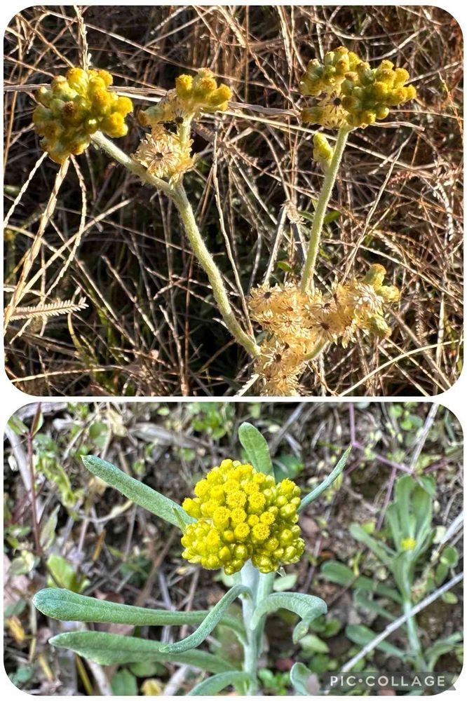 同じくメヒシバの枯れ草の中に枯れかかりのがあった、と思ったら、瑞々しい姿のもありました😍 「ハハコグサ」