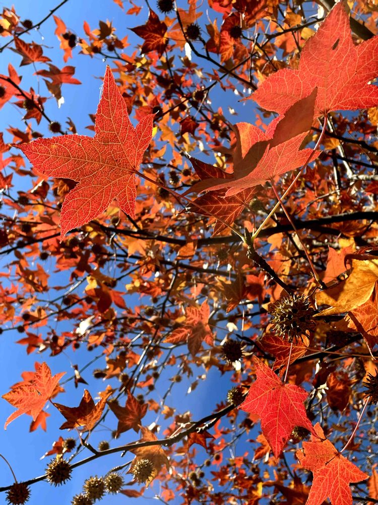 モミジバフウがたくさんある公園なのですが、日当たりなのか場所によって色が違っていて、面白いですね✨✨🍁🍁