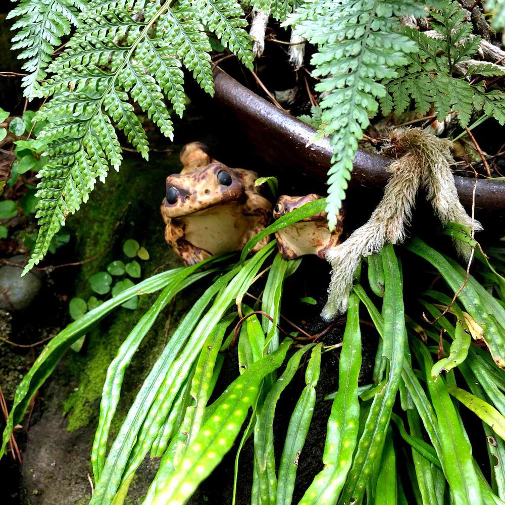 カエルさんも雨宿り。(^ν^)