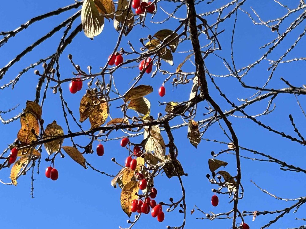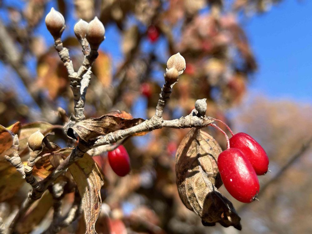 昭和記念公園の売店にサンシュユの実が売っていればいいのにです パークトレインのガイドのおじさまが「右手に見える赤い実はサンシュユです。ずっと成ったままなので不味くて鳥は食べないんだと思います」に、えっ!そうなの⁈