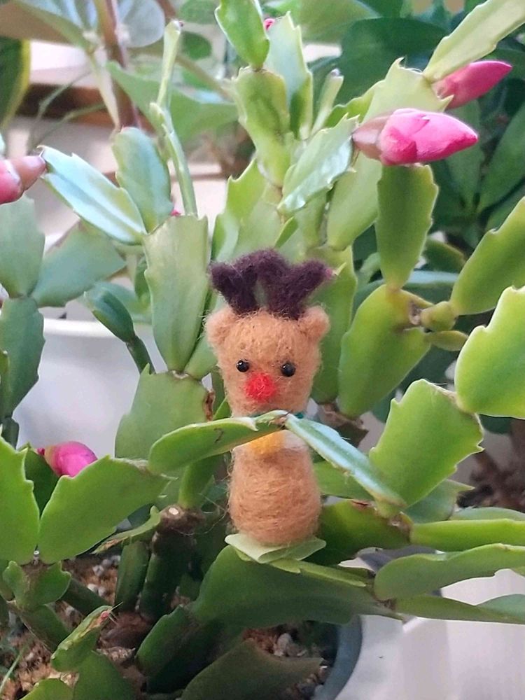 クリスマスカクタス(ピンク) トナカイさんがお供です。