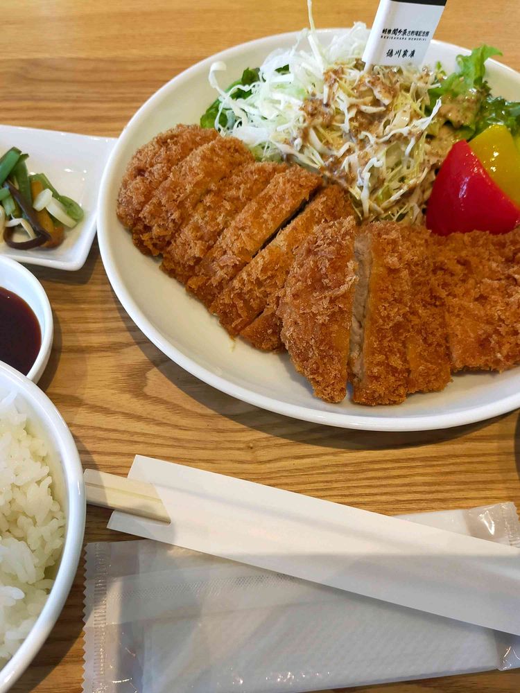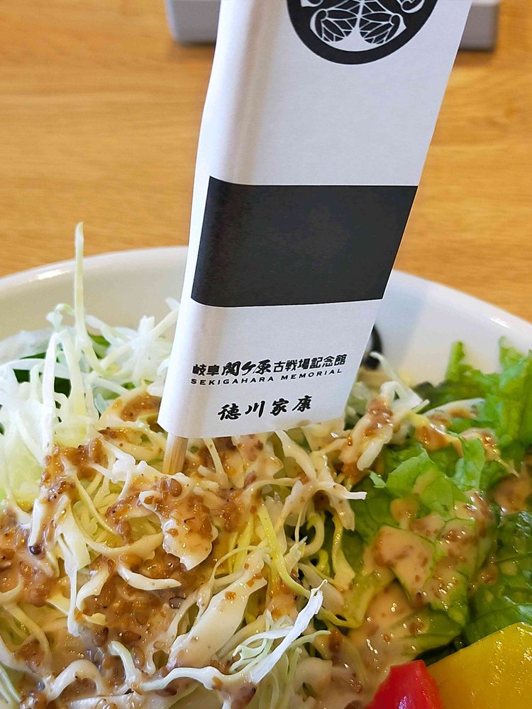 関ヶ原古戦場記念館で、家康ヒレカツ定食を注文。家康だから、カツ(勝つ)なんだな。カツの量が2倍ある。グリーンの上に旗が立っていて、笑えるな(笑)。こういう遊び心、大好き😄
