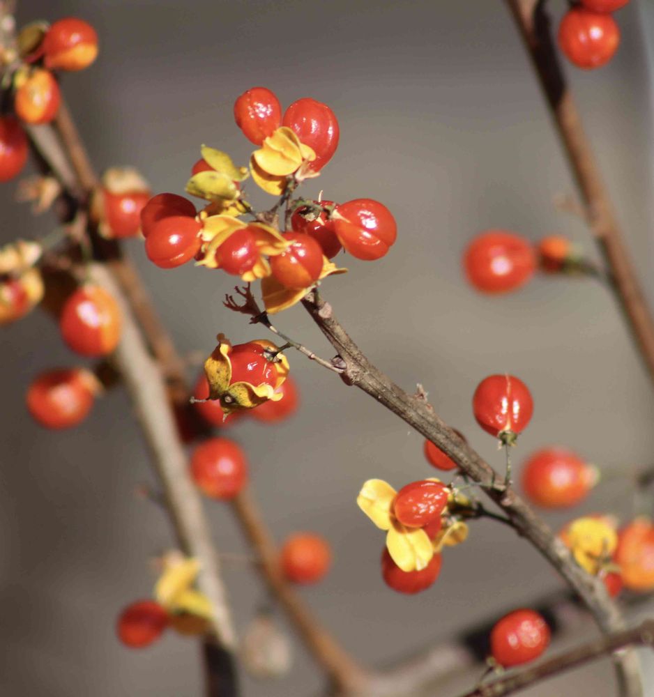 ツルウメモドキは、ほんとは、実が青いうちに切ってきて、家に置いて置くと、自然に爆ぜて、実が落ちにくいよね✌️