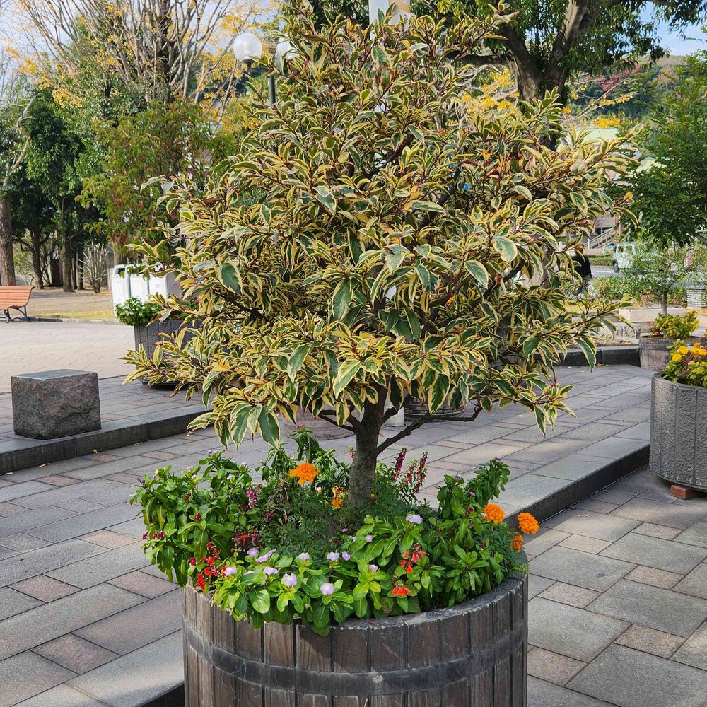 ②③④⑤中央公園内の、大きな鉢の寄せ植え。