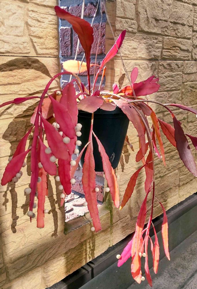前からあるリプサリスラムローサが紅葉中。リプサリスでも育てやすいのと難しいのとあるよね。これは育てやすくて枯れにくい。まだベランダで頑張ってもらってる。