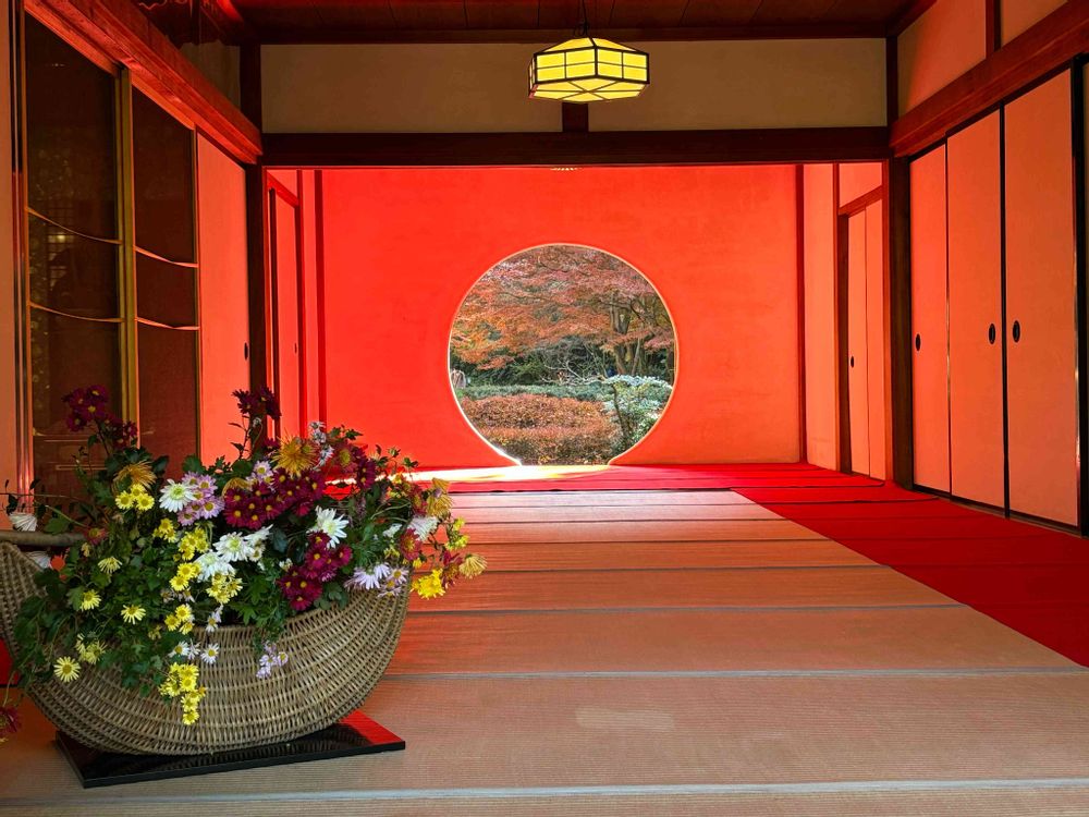 四季折々の丸窓、やっぱり初冬の今が好き。