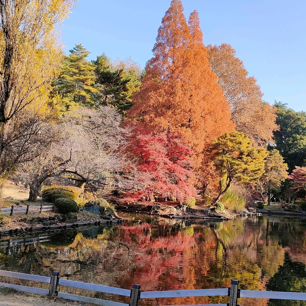 水面に映った木々美しいです~🌲🍂🍁🌳都会とは思えないほど!公園お散歩暖かくて最高でしたね😘。