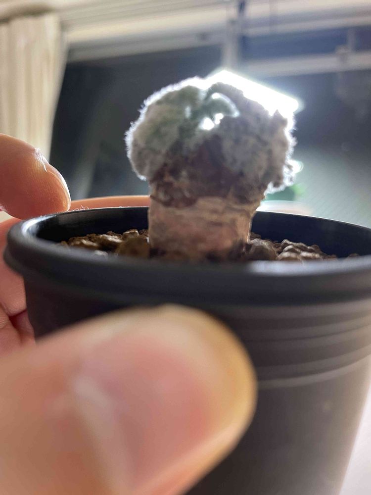 ②葉っぱが少し伸びてきて光にかざすとあら不思議。