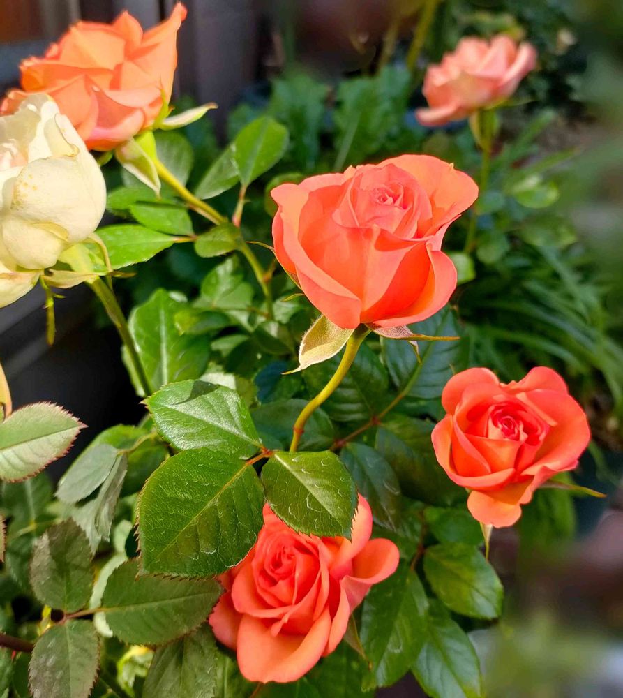 ¹ 挿し木したオレンジのミニバラが絶好調です。しばらく寒かったし庭に陽光が入らなかったせいか、ゆっくり開花がすすんでいます。