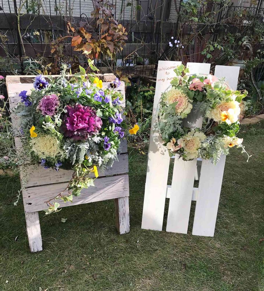 ハンギングスタンドでなくても、イスに飾ってもいいですよ〜💕