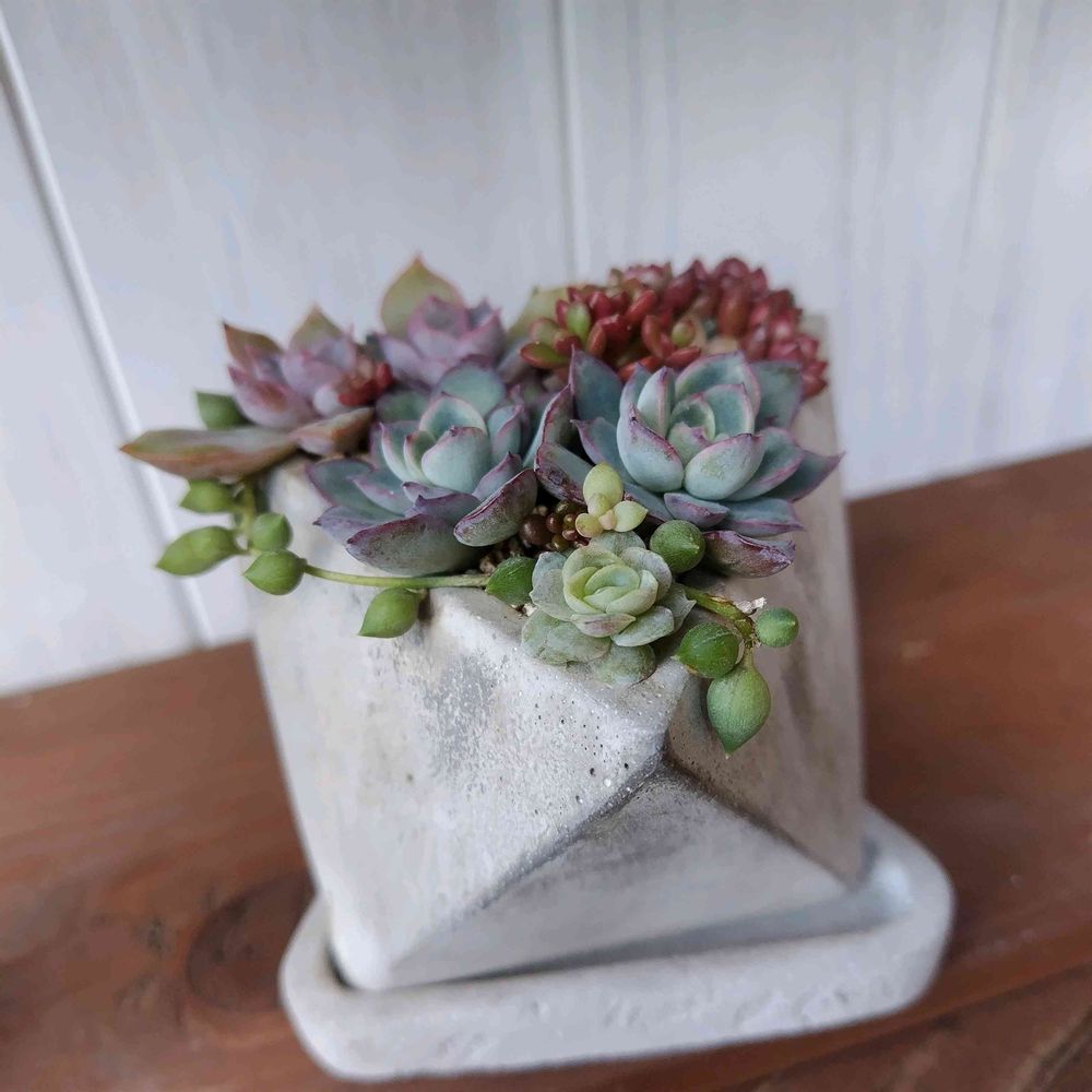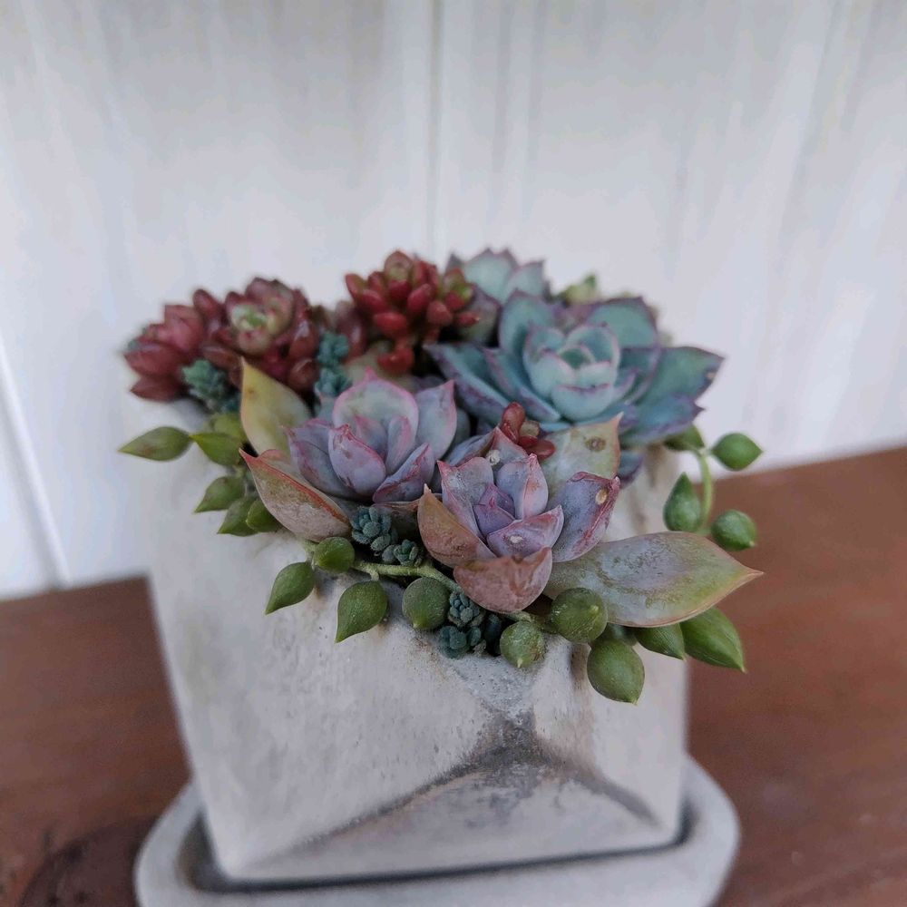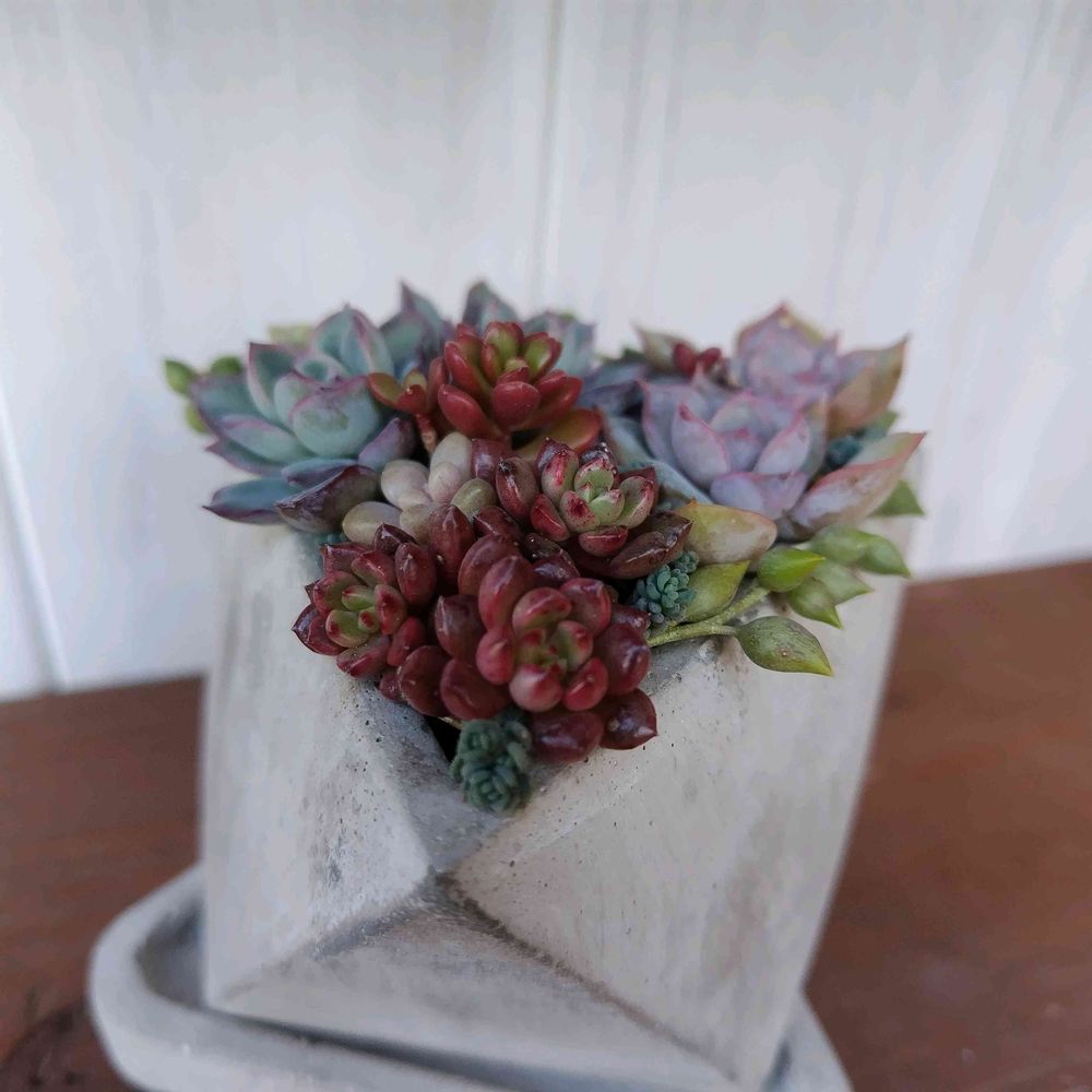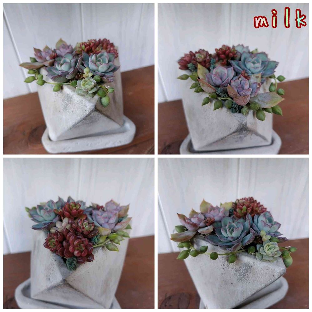 お褒めいただきありがとうございます( ៸៸ › ⩊ ‹ ៸៸)♡三角の鉢は、コレしか持ってません❣️正面を決めない寄せ方も楽しいですね🎶⸒⸒