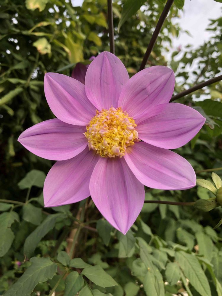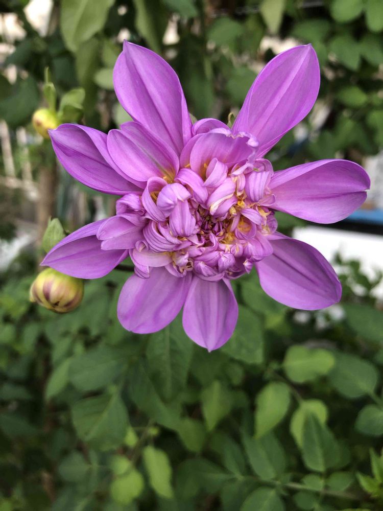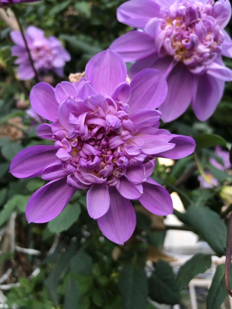 夕暮れ時、道路沿いの「皇帝ダリア」をパチリ!📸💜🌿😊🤗🌇✌️