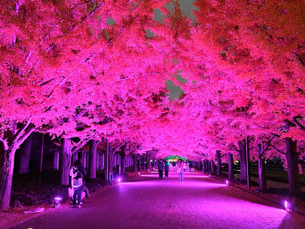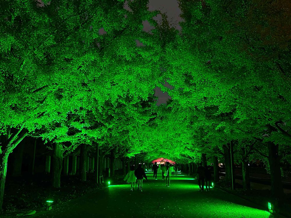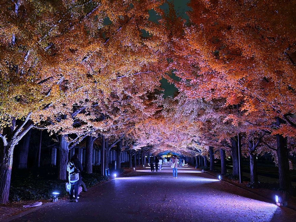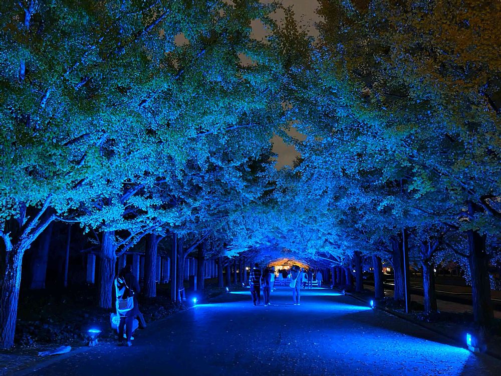 最後は立川駅方面に歩いて行く途中にあるイチョウ並木のライトアップです