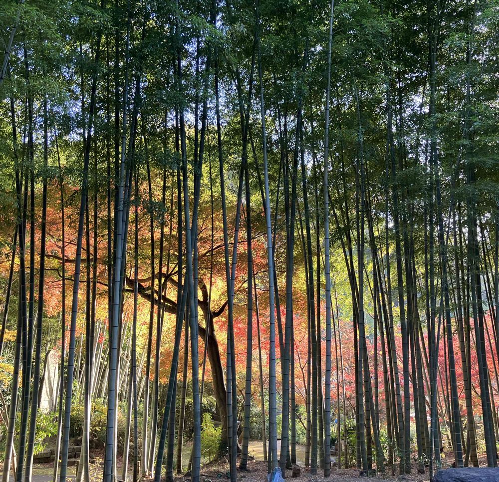 虫塚の竹林 紅葉🍁を愉しまれて来たのですネ🎶 紅葉が進んで 美しい色彩を👀にされましたネ🎶🥰